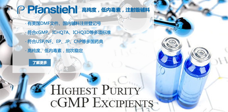“熱烈祝賀Pfanstiehl的注射級甘氨酸Glycine(G-140)喜獲CDE登記號F20250000403, 這是Pfanstiehl產品獲得的第18個CDE登記號!”甘氨酸在醫藥輔料制劑中應用廣泛,, 可作為緩沖劑,增溶劑,穩定劑等,具有諸多優勢。Pfanstiehl秉承一貫高品質理念,為滿足全球生物制藥行業對于高品質甘氨酸的需求,隆重推出的注射級甘氨酸Glycine (G-140), 具有超高純度,超低內毒素,超低金屬殘留的特點,單獨檢測29種金屬離子,并且新增DNA,RNA,DNA酶,RNA酶和脂肪酶,亞硝酸鹽等多項質量指標的檢測,符合多國藥典規定(USP, EP, BP, JPE, ChP),可用于生物治療性藥物和疫苗的生產。產品信息:· 產品名稱:Glycine, High Purity, Low Endotoxin, Low Metals, USP, EP, BP, JPE, ChP (G-140)· 中文名稱:甘氨酸· 分子式:C2H5NO2· 分子量:75.07 g / mol· CAS號:56-40-6· 產品貨號:G-140產品特點: · 超高純度,超低內毒素,超低微生物含量,超低金屬雜質殘留· 質量指標新增DNA,RNA,DNA酶,RNA酶,脂肪酶和亞硝酸鹽檢測· 符合多國藥典:USP, EP, BP, JPE, ChP· 符合ICH Q3D標準· 符合GMP標準· 已獲DMF和CDE登記號 產品應用:· 緩沖劑· 穩定劑· 增溶劑如果您對Pfanstiehl注射級別Glycine G-140感興趣,歡迎聯系Pfanstiehl 中國區代理商北京西美杰科技有限公司獲得如下詳細的產品概況說明文件和測試樣品。Pfanstiehl Inc.最新產品系列如下,歡迎聯系北京西美杰科技有限公司獲取100g裝免費樣品。北京西美杰科技有限公司為Pfanstiehl中國代理,為客戶提供完善的技術支持與售后服務。歡迎撥打西美杰客服電話400-050-4006或者登陸網站www_xmjsci_com.delai021.com.cn了解更多信息。 更多>